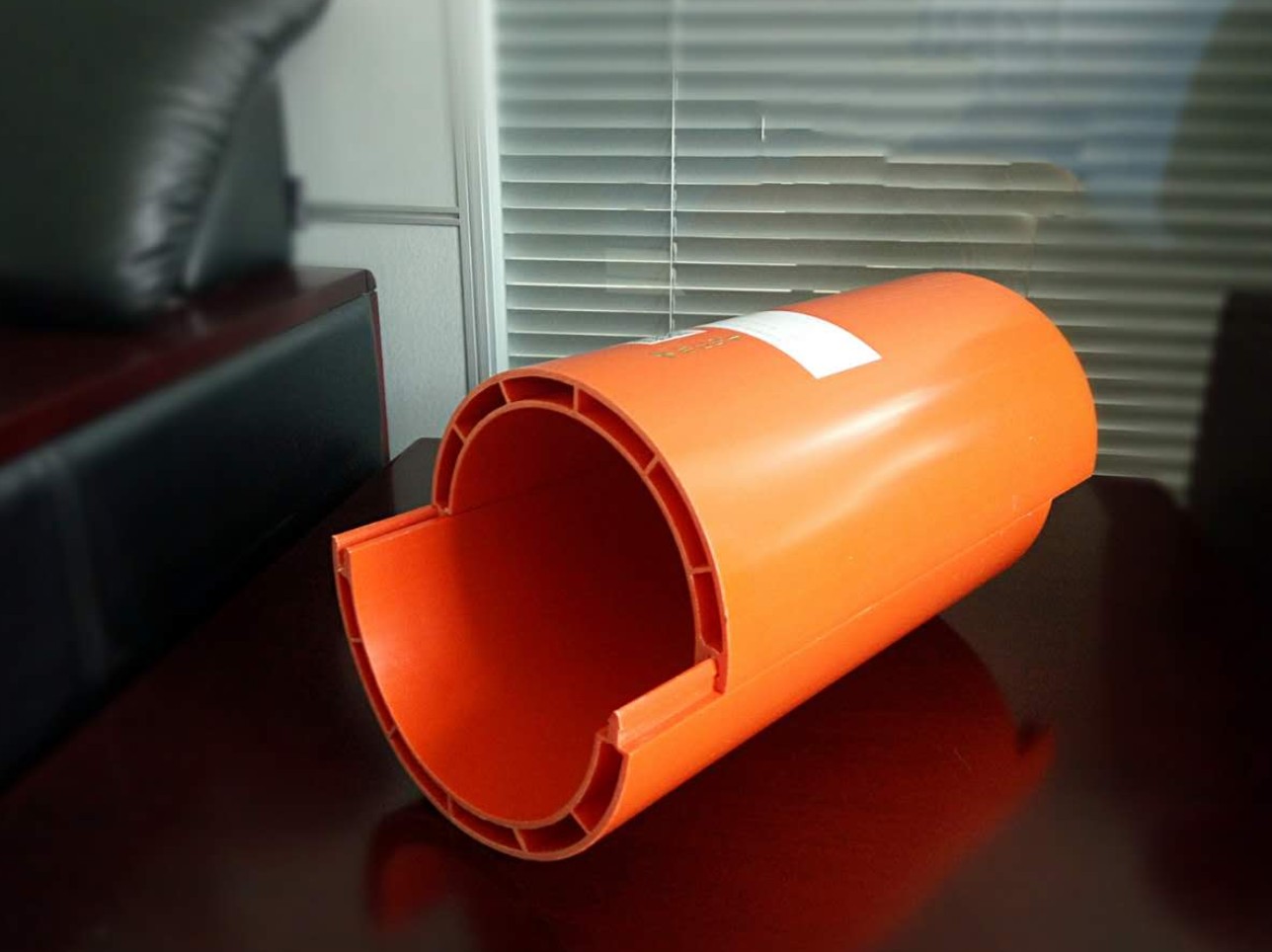 高強度聚氯乙烯(HPVC)哈夫管是以聚氯乙烯樹脂為主原料,經共混改性,在一定的溫度和壓力下經擠出成型的一種高抗壓、高沖擊強度電纜保護導管。