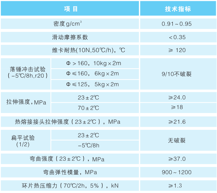 質(zhì)輕、光滑、磨擦阻力小,可熱熔焊對(duì)接。